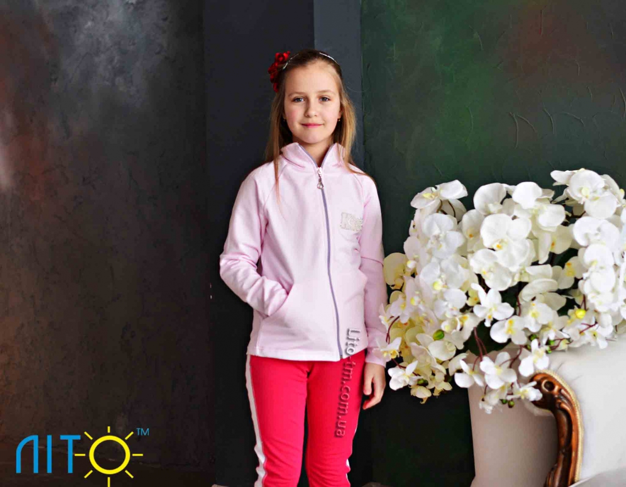 Гламурний спортивний костюм для дівчини. Дуже приємна  тканина (двонитка). Не кошлатиться і не втрачає свого кольору після прання. Друк виконаний європейськими матеріалами і  є  стійким в експлуатації.  Низ і манжети спортивного костюма оброблені резинкою для кращої фіксації на тілі дитини. Використана якісна фурнітура європейських виробників. Увесь наш одяг має гігієнічні висновки. Ви можете бути впевненні, що ваша дитина одягнута не тільки комфорнто, але й модно.