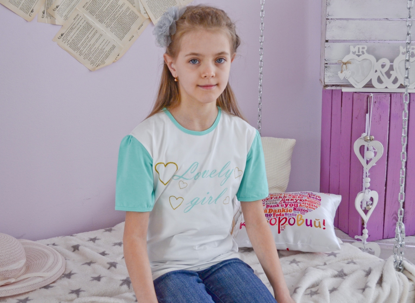Футболка для дівчат з друком "Lovely girl".