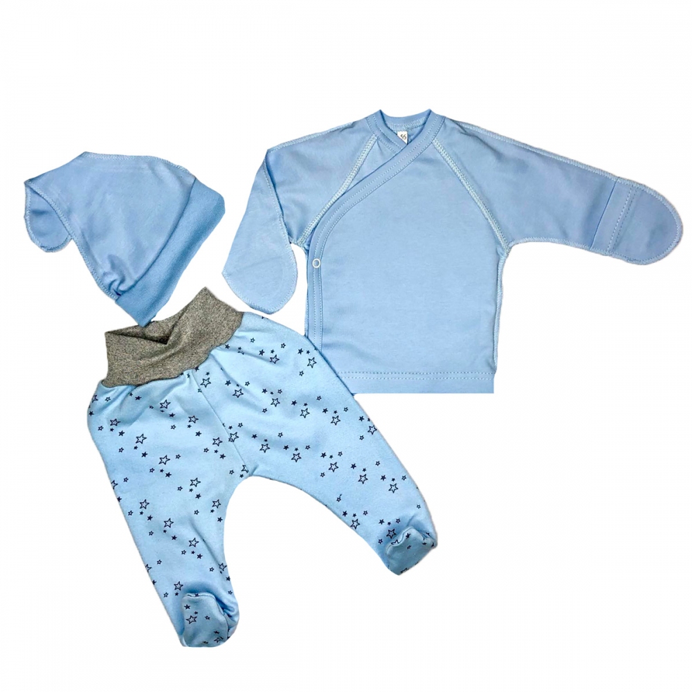 В комплект входит:распашонка,штаны,шапочка узелок